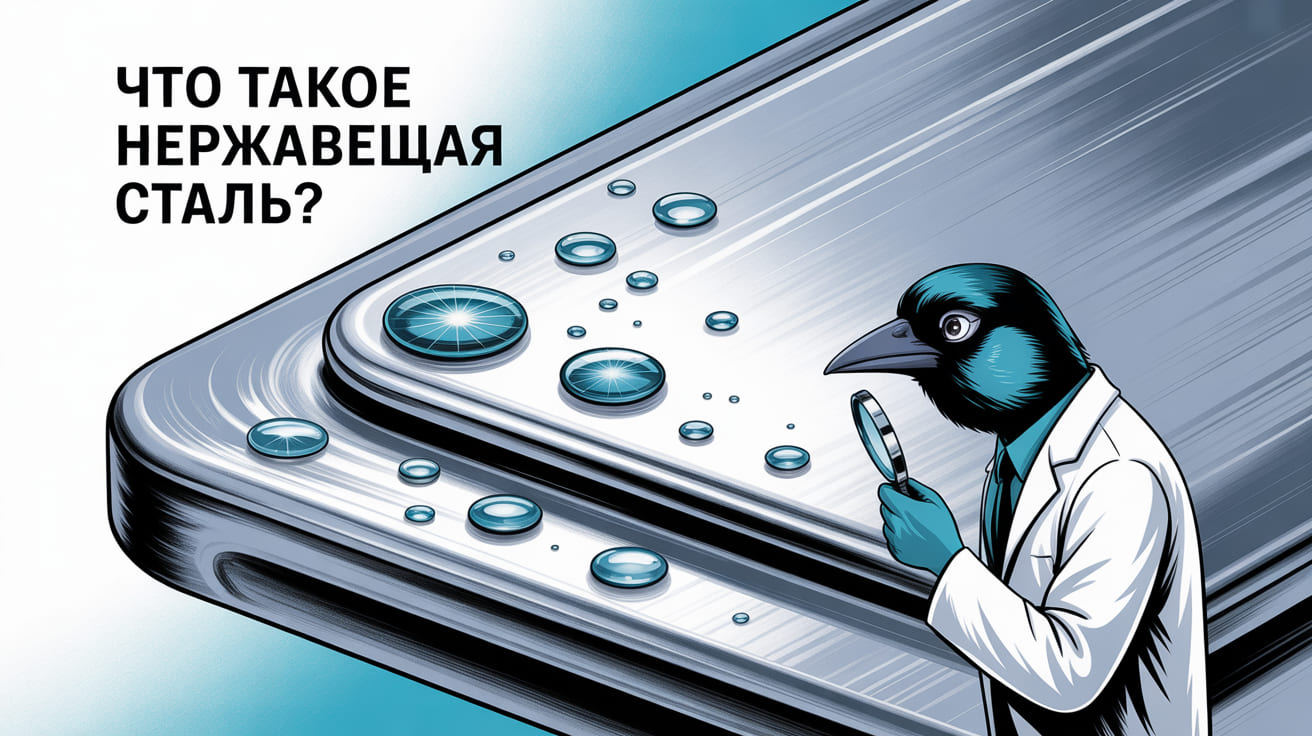 Нержавеющая сталь — это сплав железа с хромом (не менее 10,5%), который образует защитную плёнку на поверхности и предотвращает коррозию.