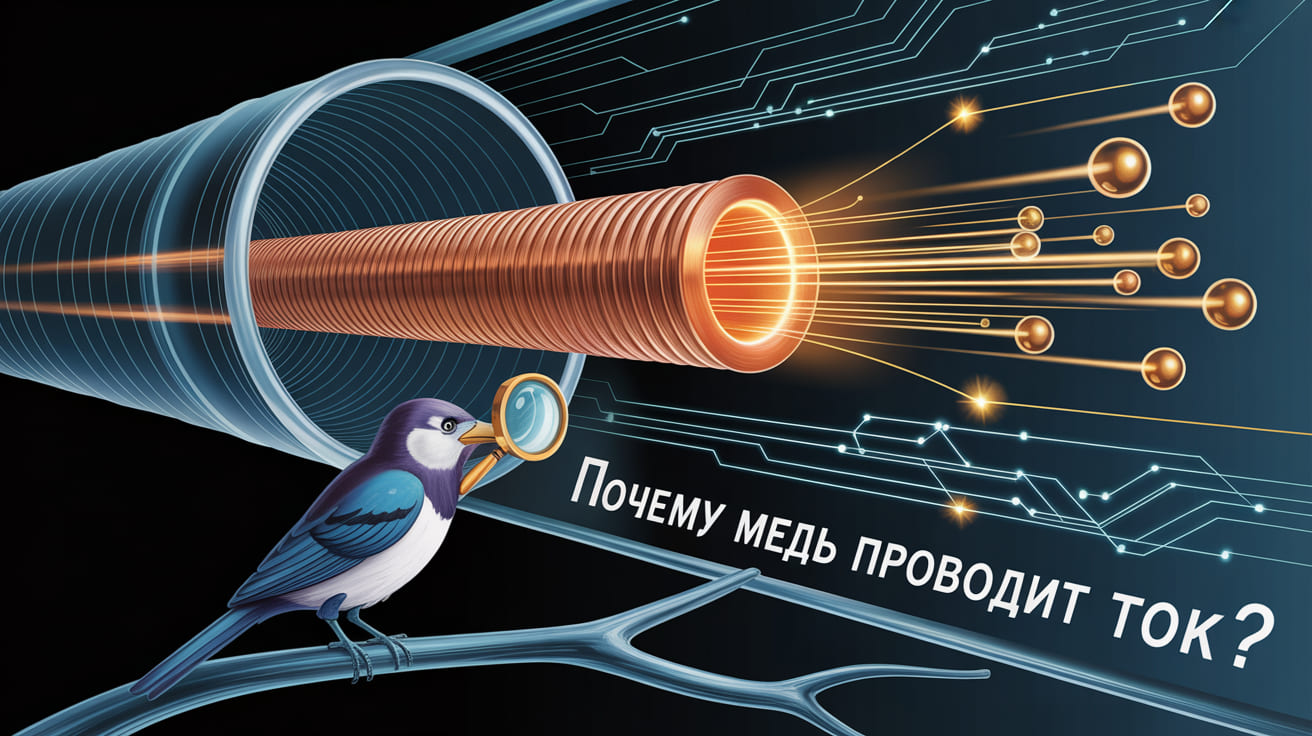 Медь проводит ток, потому что в её кристаллической решётке есть свободные электроны, которые легко перемещаются под действием электрического поля. Это делает медь идеальным проводником — и главным героем любой электропроводки.